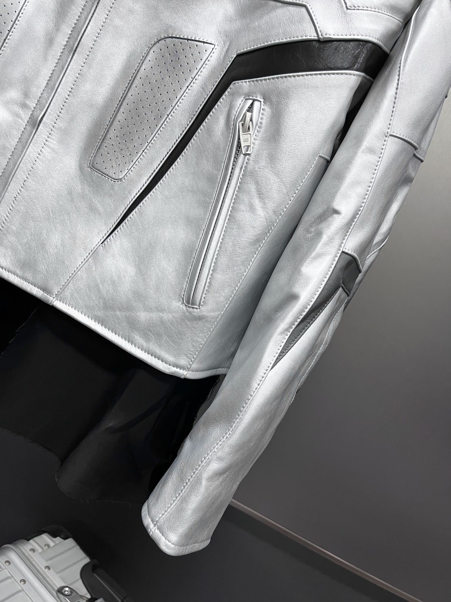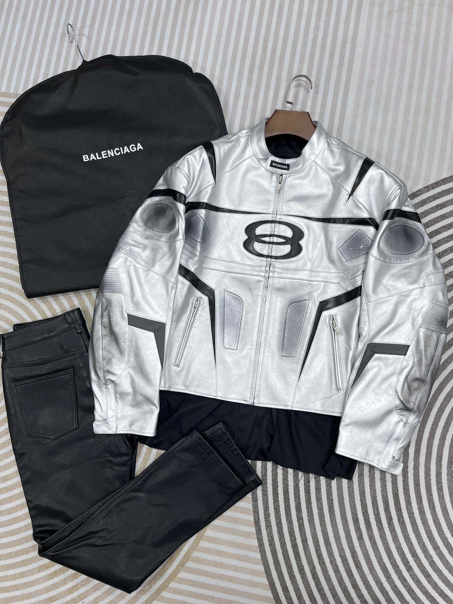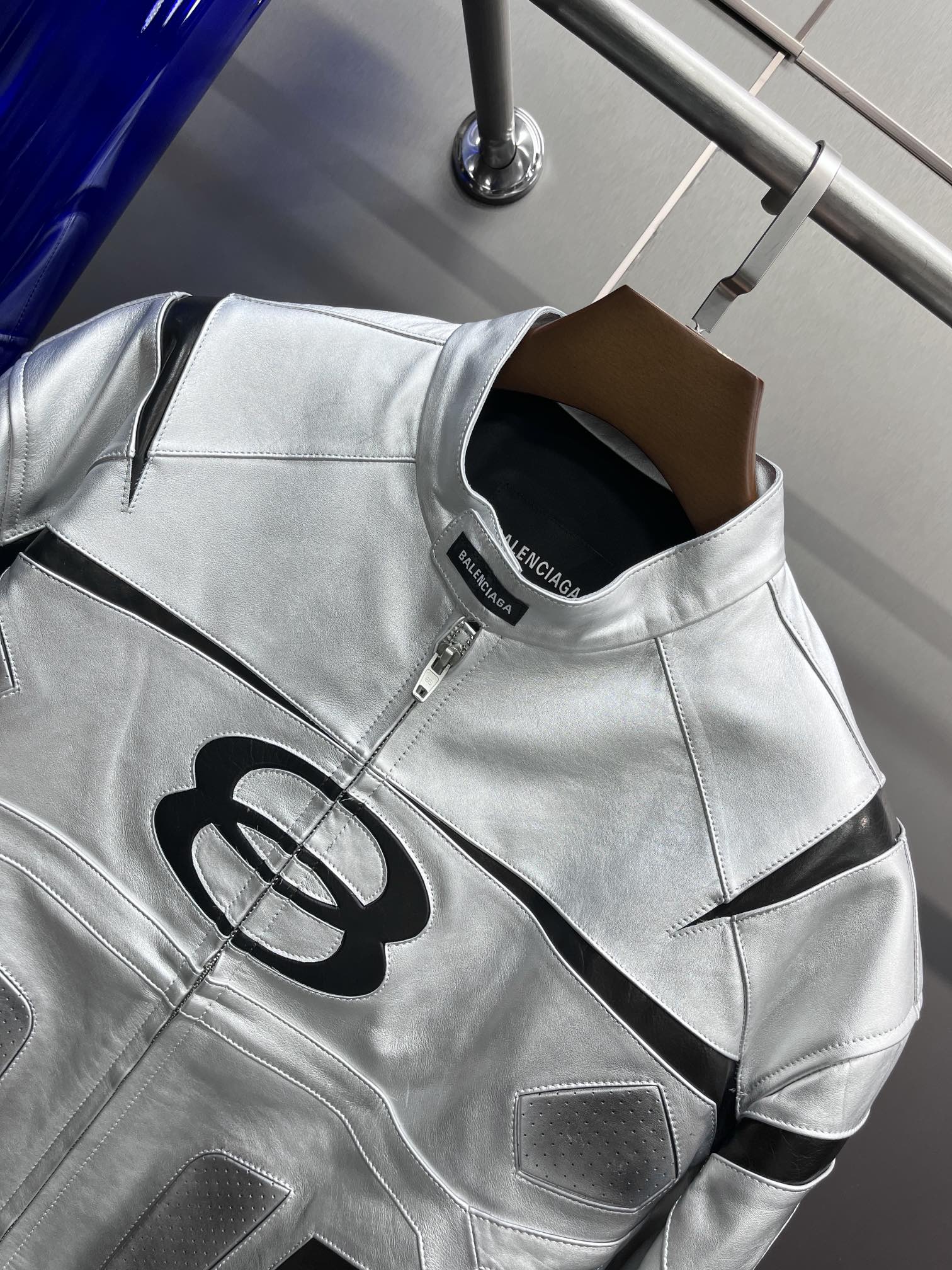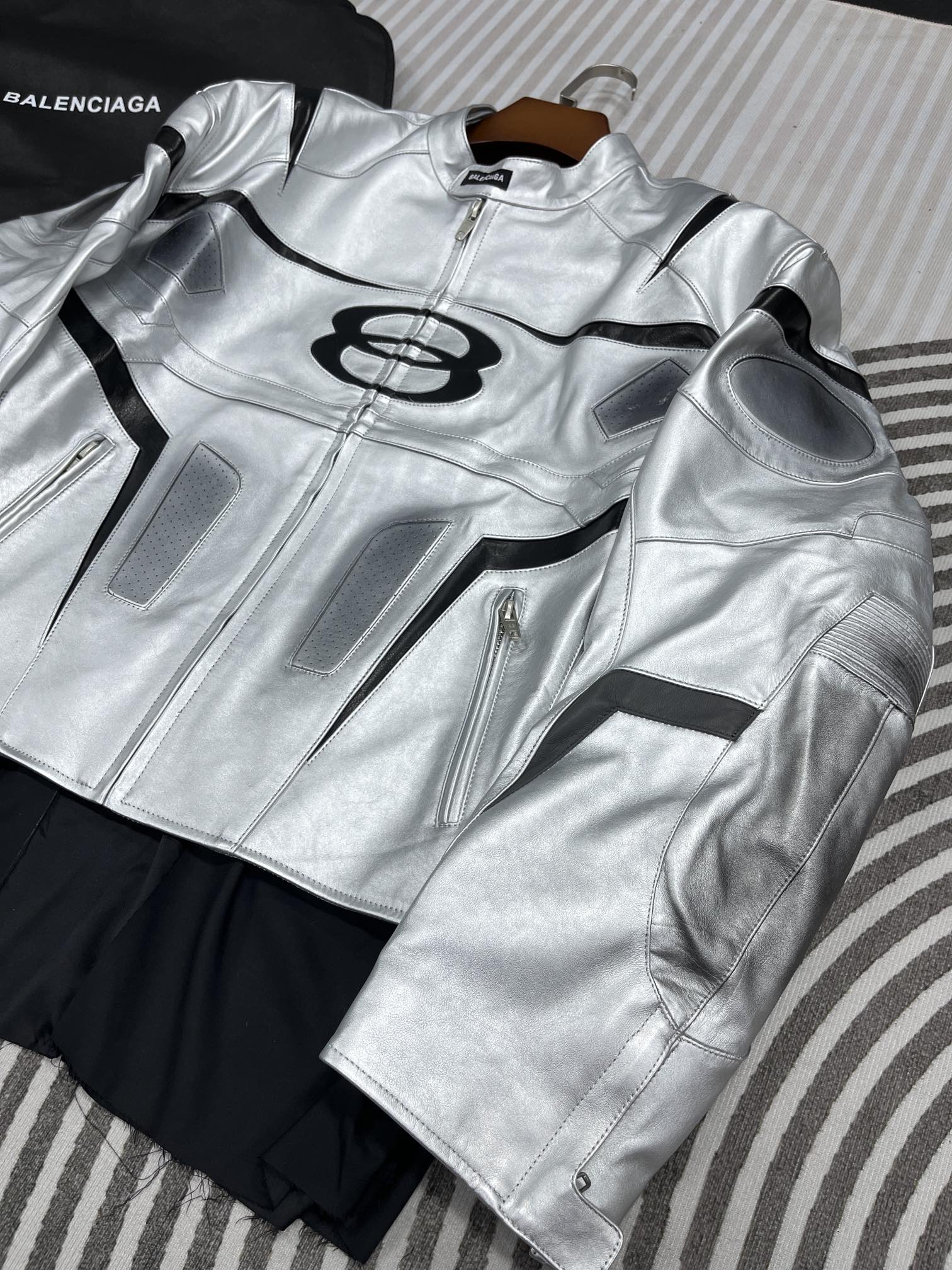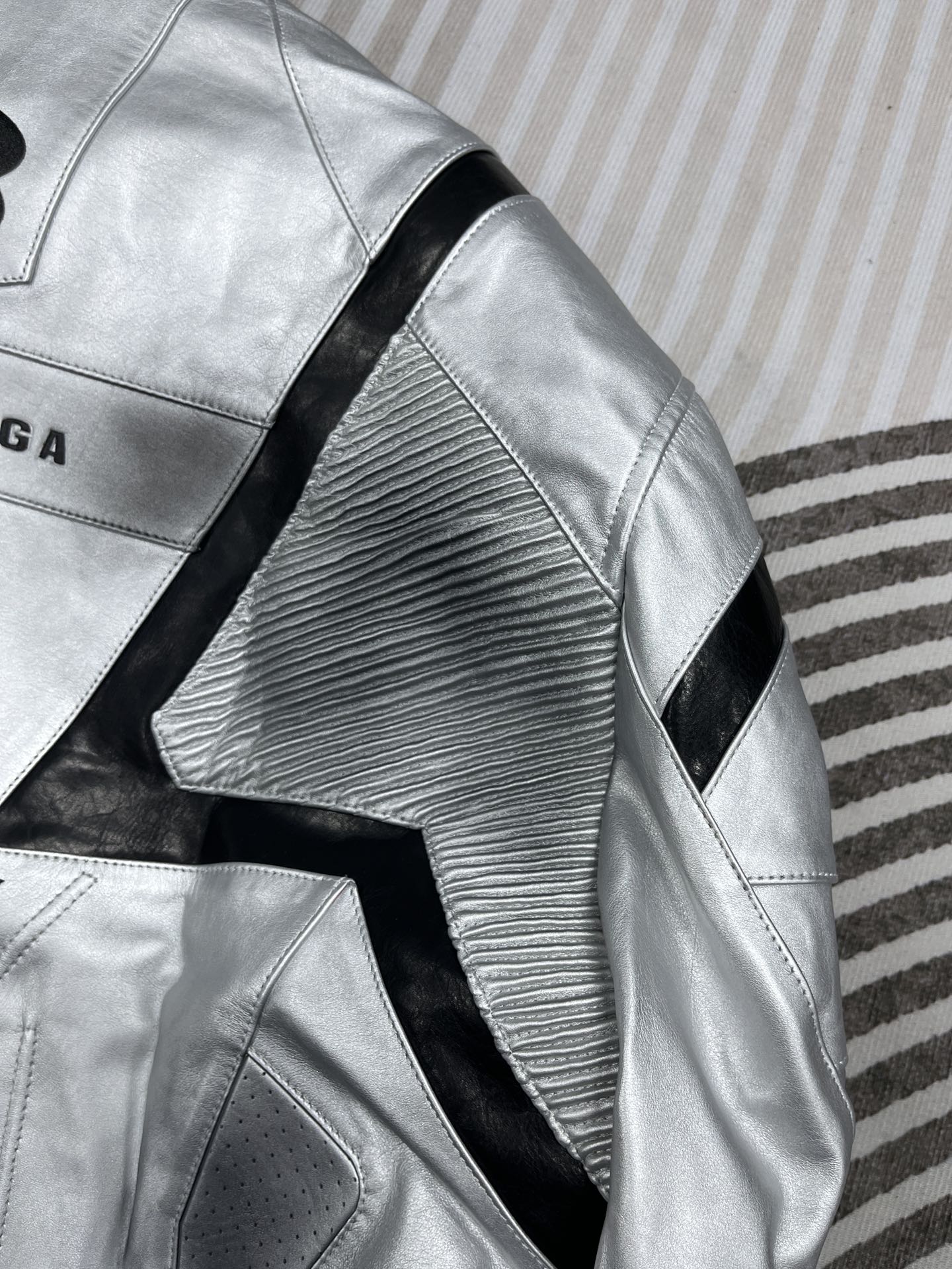 Balenciaga Oversized Leather Bikers Jacket – Silver