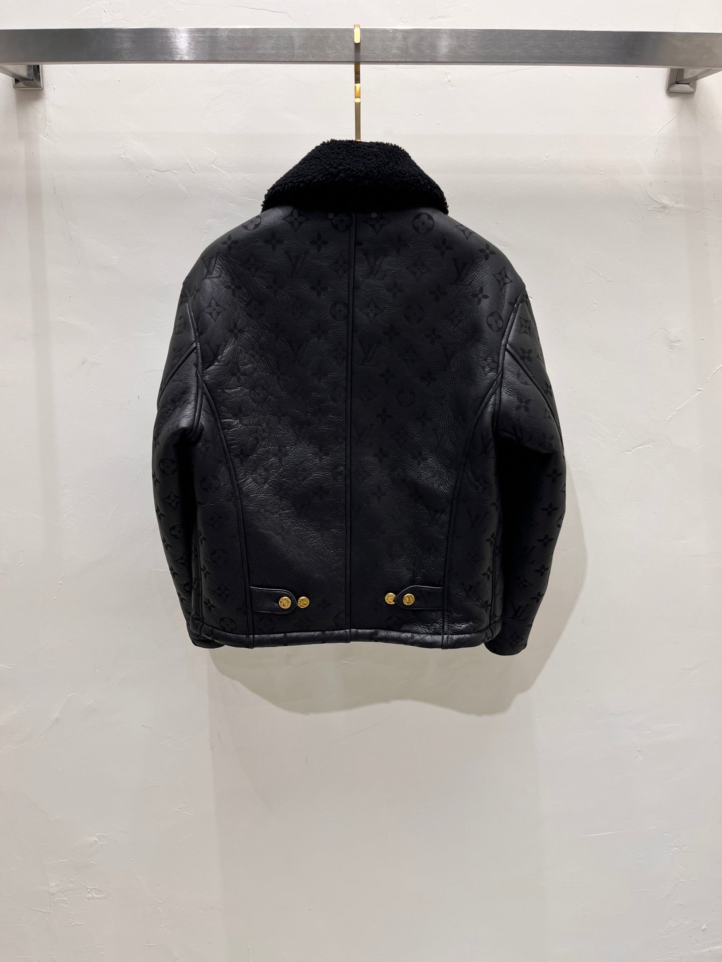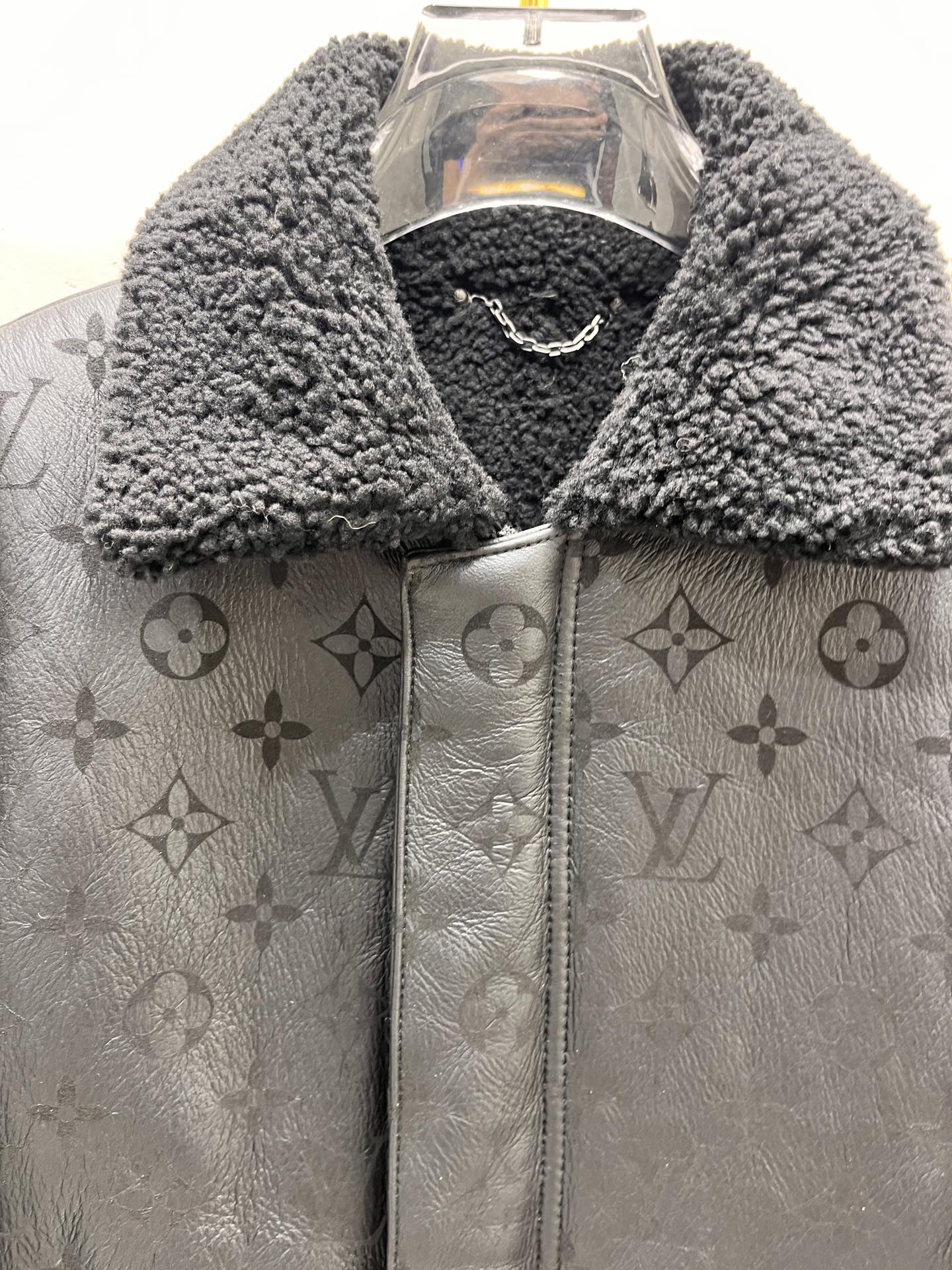 Selling out quick—add the Louis Vuitton Black Full Monogram Shearling Leather Winter Jacket to your cart before it disappears.