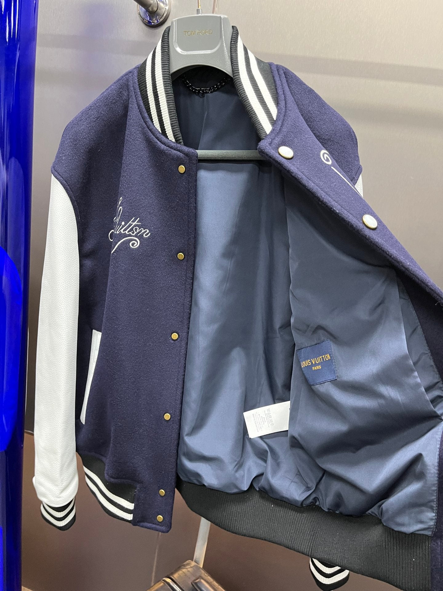 Louis Vuitton Calfskin Varsity Jacket – Navy & White Seashell Edition For Sale