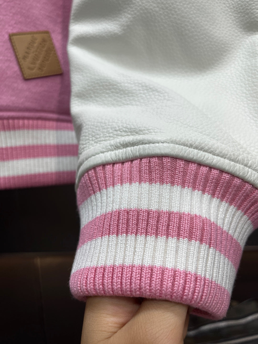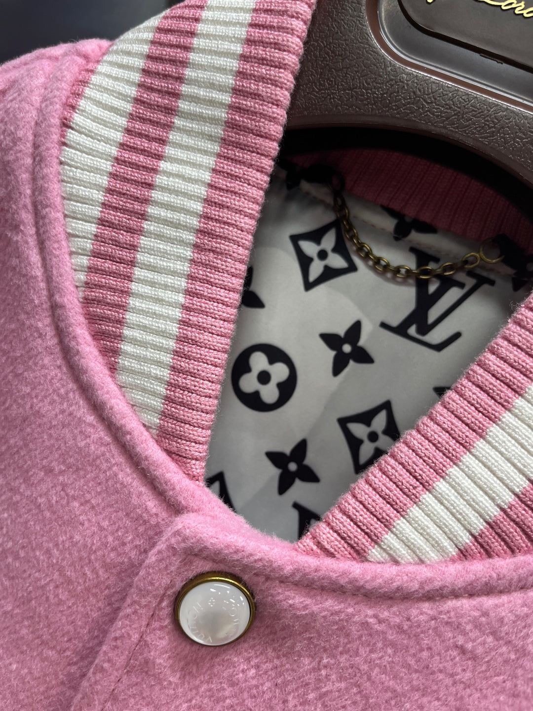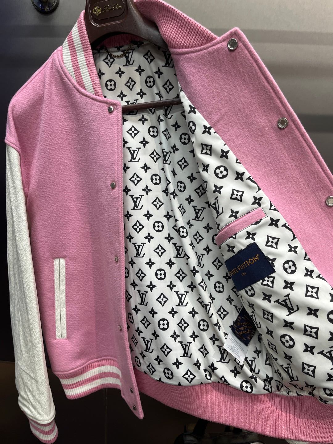 Louis Vuitton Signature Leather Varsity Jacket – Pale Pink / Black