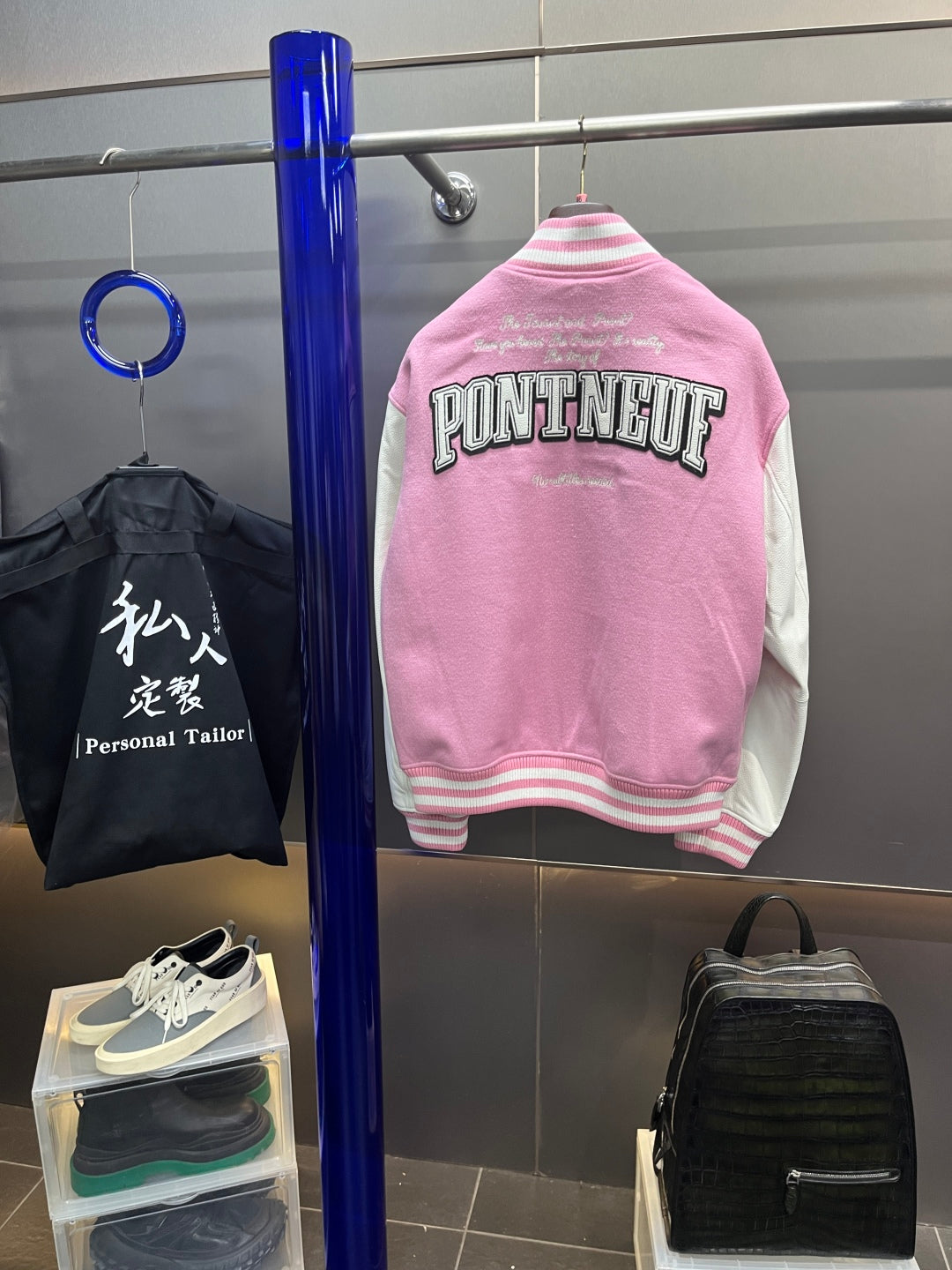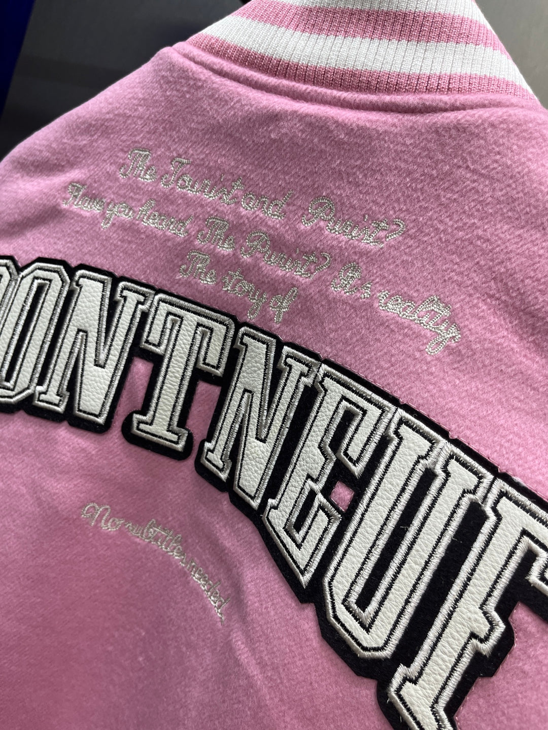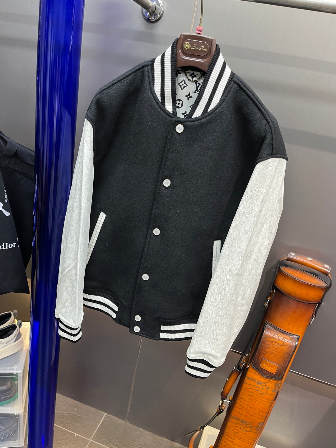 Louis Vuitton Signature Leather Varsity Jacket – Pale Pink / Black